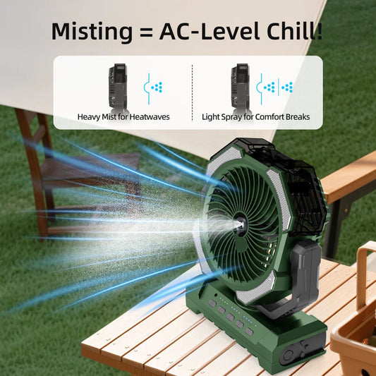 16000Mah Rechargeable Camping Misting Fan, 250Ml Water Tank,4 Speed, Remote Control, Timer, 4 LED Brightness