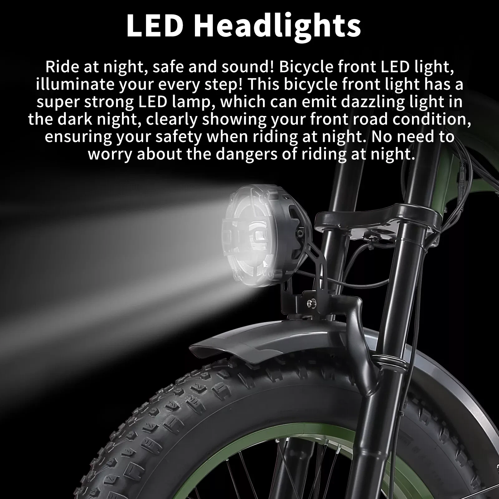 Smart LCD Display and Upgraded LED Lights: The smart LCD display tracks real-time speed, battery charge, pedal assist level and mileage. This electric bike is equipped with upgraded bright LED headlights and rear turn signal lights, keeping you clearly visible and safe at night.