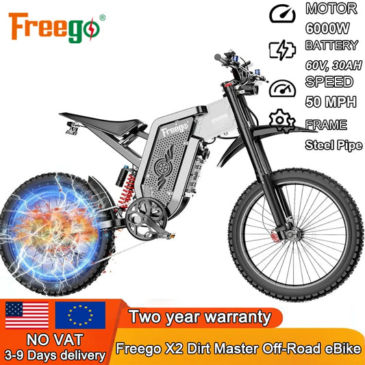 Freego X2 Pro Electric Motorcycles Peak 6000W Brushless Gearless Motors 60V30AH Lithium Battery Speed 85Kmh Adult off Road Ebike