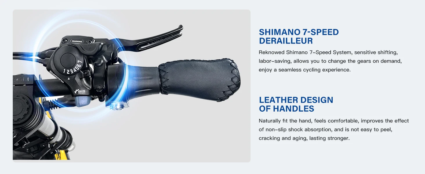 【1000/2000/3000W Powerful Motor】COSWHEEL GT20 e bike uses Powerful Brushless Motor. The motor can reach 1000W/2000W/3000W and the top speed can up to 31/40MPH and 45° hill climbing. With 7-speed gear system, conquering steep inclines has never been easier, allowing you to explore new places with confidence.