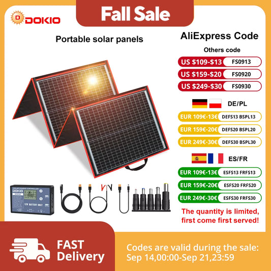 Dokio 18V 97W 150W 195W 295W Portable Foldable Solar Panel with 12V Controller Flexible Solar Panel for House Camping Travel