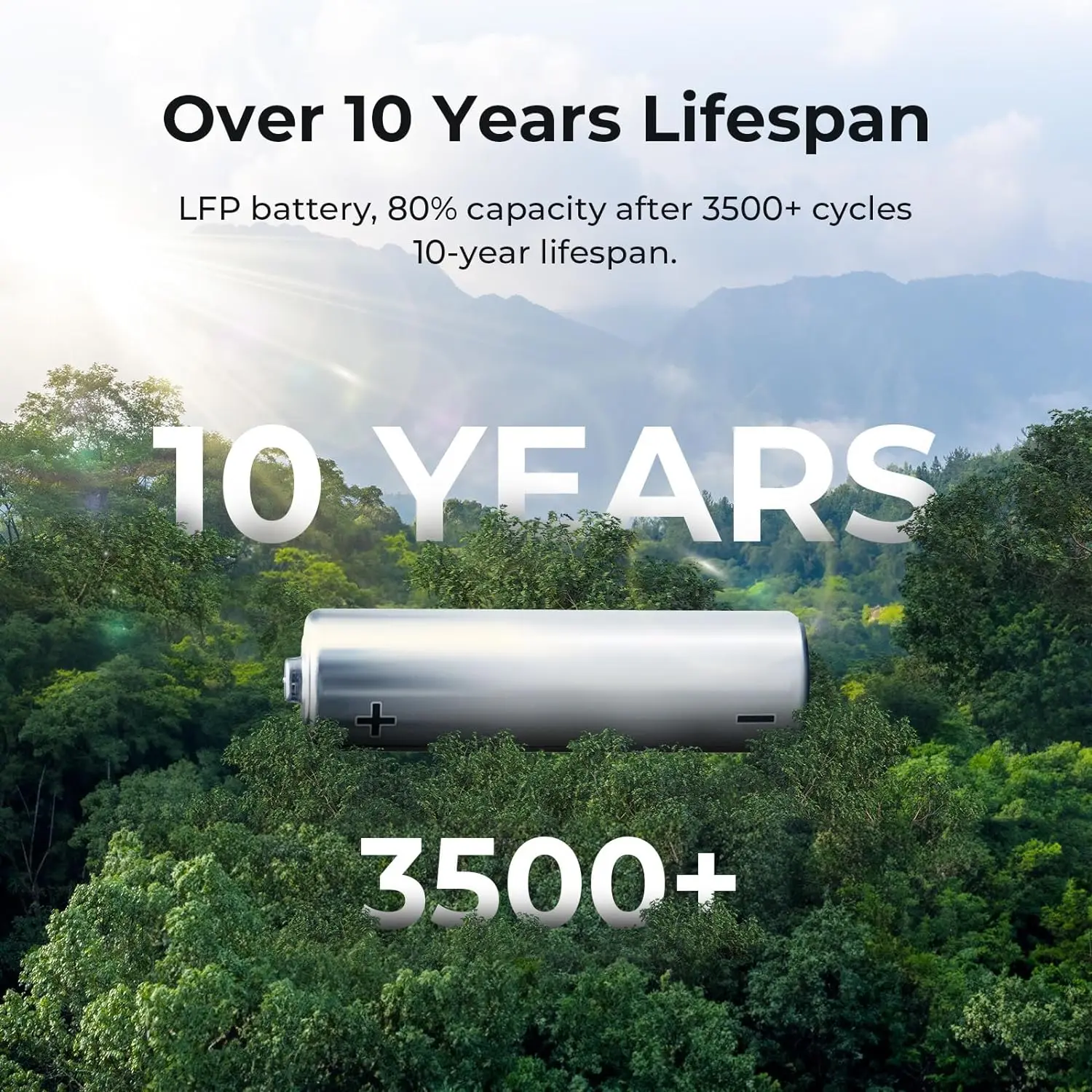 The safe, eco-friendly LiFePO4 battery (with a lifespan of over 10 years) and BMS technology offer multiple protections and more than 3,500 life cycles (retaining 80% capacity) for the LiFePO4 power station. The UPS automatically initiates within 0.1 seconds, and the output has increased from 1100W to 1400W.