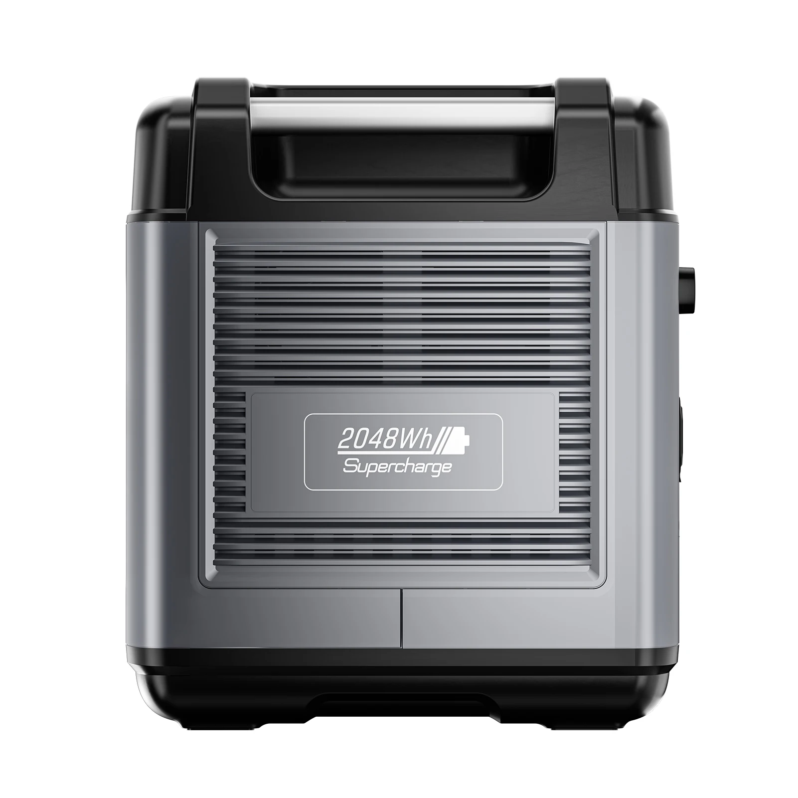 With 2048Wh and 2400W rated power, this device can power 99% of appliances through 13 versatile outlets (4 AC outlets, 2 USB-A quick charge 3.0 ports, 4 USB-C PD ports [20W, 45W, 100W], 2 DC outlets, and 1 cigar lighter). It is ideal for outdoor off-grid activities and as home backup power for most appliances, phones, laptops, power tools, cooking utensils, vehicle-mounted products, and remote-controlled aircraft.